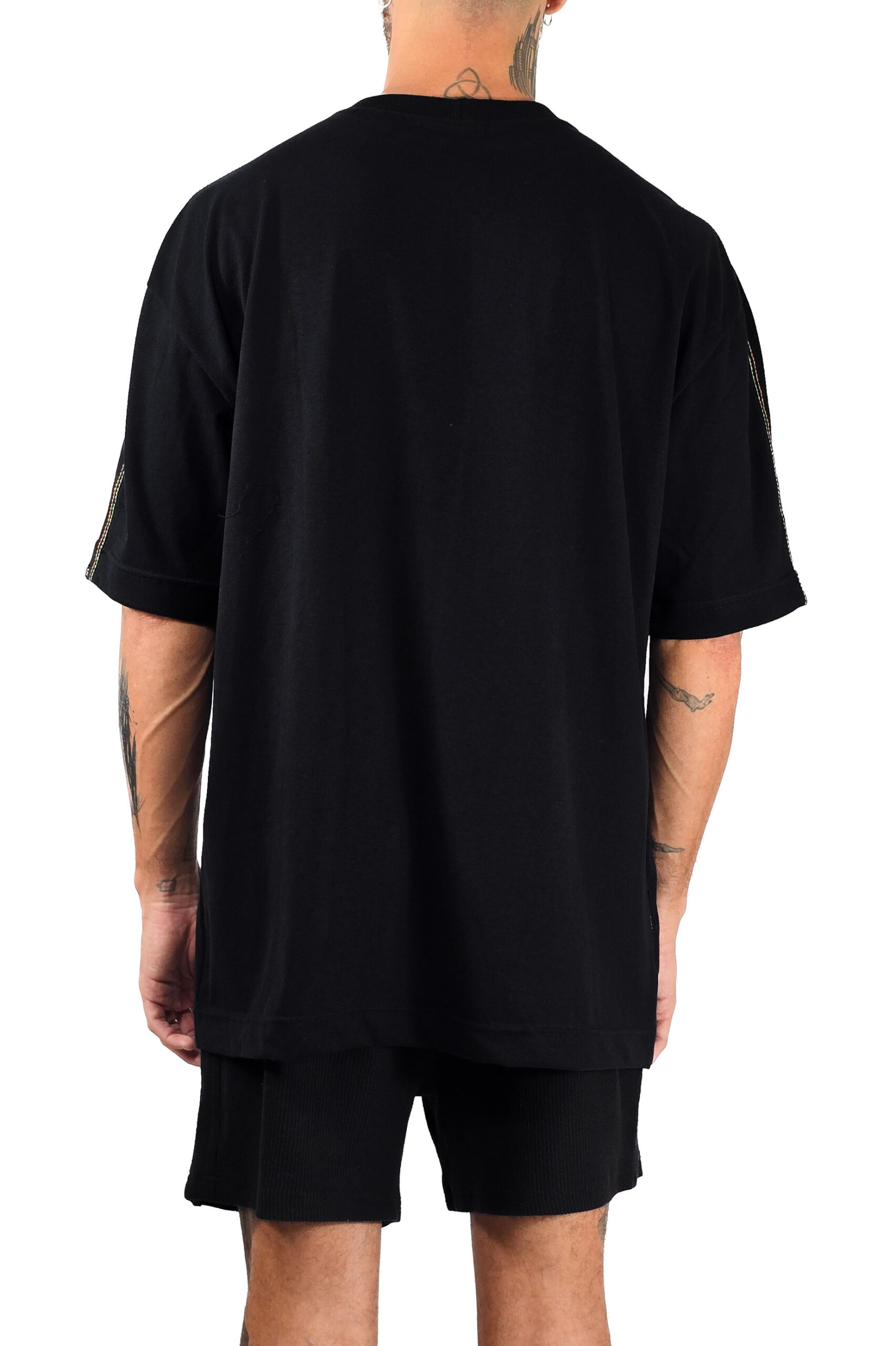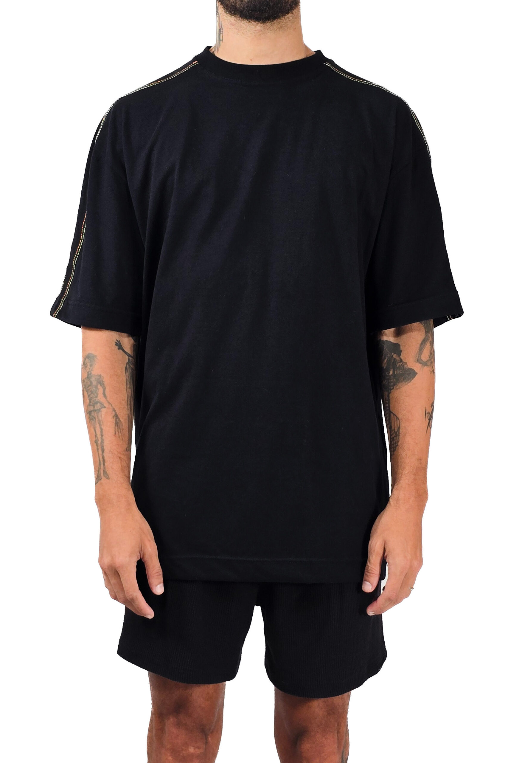 O primeiro produto TARJAPRETA. A camiseta matriz, a inspiração de todas as peças de cima. A TARJA.01 traduz o espírito da linha RUA: peça ampla, confortável e construída para acompanhar o movimento da cidade.
